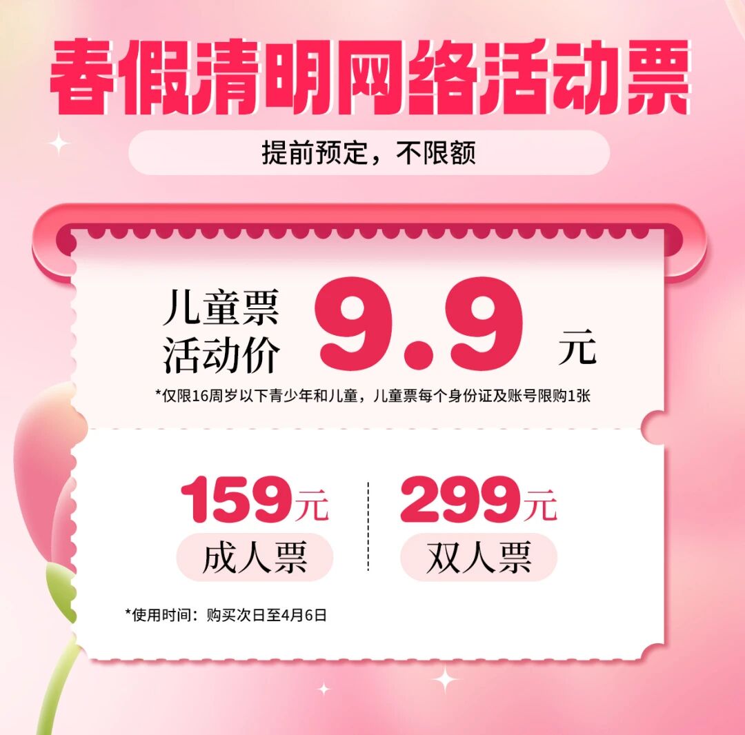 2、门票有效期:4月3日-4月30日,仅当天领取有效。